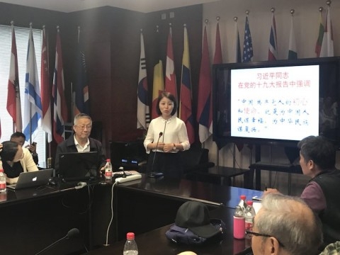 5月4日中午,国际文化交流学院退休党支部和2017级研究生党支部开展了主题为“不忘初心、牢记使命”的组织生活共建,进行了一场老党员和年轻党员的恳谈会。17名退休教工党员、10名研究生党员、多名研究生入党积极分子参加了活动。退休党支部书记贺国伟和2017级研究生党支部书记李洁主持会议。 作为主题党日活动,全体同志认真学习了习近平同志在党的十九大报告中强调的“中国共产党人的初心和使命,就是为中国人民谋幸福,为中华民族谋复兴”,紧扣“初心+使命”主题展开了热烈讨论。 上世纪50年代入党的王桂伦老师,饱含激情地畅忆了当年的峥嵘岁月,分享了他从军、建设、入学、任教、行政等不同岗位的体会。他认定:“党培养了我,我就一定要在理想指引下好好干,遇到困难,时刻想到‘我是个党员’。” 同样是50年代入党的李福根老师为参加本次会议,提前结束了在外旅行,凌晨刚回到上海,顾不上休息就赶来会场。他回忆了当年在藏参加革命工作的惊险场面。他强调,为党为人民奋斗是自己的终身奋斗目标。他说,“党怎么布置就怎么干,为人民服务很幸福”“党指向哪里我就要去哪里”。他曾经身处不同岗位,始终以共产党员标准要求自己。 陈光磊老师追忆了导师陈望道老校长首译《共产党宣言》的初心,向党员同志们展示了“信仰之源”的真旨。他还深情地阐述了望道老校长将救国救民的革命之心与改革语文教育密切结合的深刻思想内涵,让在座同志们耳目一新,获得了精神上的升华。 王新文老师说,“初心+使命”是共产党员的起码要求。历史雄辩地证明,只有中国共产党,才是真正为中国人民谋幸福、为中华民族谋复兴的党。党的理论基础是马克思列宁主义、毛泽东思想。现在发展新党员,不学《共产党宣言》,必须予以纠正。他告诫青年同志要认真学习《共产党宣言》等原著,自己就是学了这“信仰之源”才加入党组织的。 朱一飞老师畅谈了献身汉语教育和文化传播事业的体会。他觉得要把追求革命理想和做好本职工作结合起来,通过实际行动使崇高信仰得以具体落实,不断提升。秦湘老师畅谈了在党的教育下成长进步的体会。自己作为党员,“一生就努力勤奋地做好一件事---对外汉语教学”,并为此感到很充实很幸福。虽已退休,但一定要多多展望美好未来,保持乐观心态,充满正能量。金路老师和李茂老师认为,作为党员,思想上一定不能落后,行动上也应紧紧跟上。社会千变万化,始终要以马克思主义为指导,牢记入党时的庄严宣誓,保持共产党人的初心。 师生交流中,研究生党支部的尹梦琪同学热情赞扬了老党员的理想境界与人格魅力。她表示,自己真切感受到年青一代的幸福,充分认识到是党带领全国人民克服困难、奋勇向前。张彤同学的祖父曾经是参加抗美援朝的军医,今天与祖父辈分的各位老同志座谈,由衷地感到鼓舞和振奋。她谈了对“初心”的理解,就是最初的理想信念,就是正确的价值观。要不断学习身边的榜样,脚踏实地地学习和工作。顾逸然同学听到老同志的分享,觉得十分亲切。 自己高中就入了党,经过这些年的学习和思考,越发意识到入党不仅是荣誉,更要有强烈的社会责任感。作为共产党员,一定要起到桥梁纽带作用。要积极学习,努力做好各项工作,牢记使命,做名好党员。 本次师生组织生活共建,无论是老同志的深沉讲述,还是年轻同志的感慨发言,都引发共鸣,很多同志感到意犹未尽。活动结束后,同志们在以“初心+使命”为主题的党员学习群里继续热烈地交流,踊跃地发言,并纷纷表示受益匪浅。